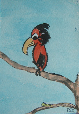 Breakfast is Coming, watercolours on paper, ACEO 2.5x3.5in