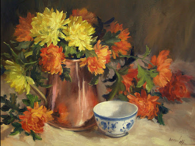 Chrysanthemums and Copper, oil on canvas, 12 x 16