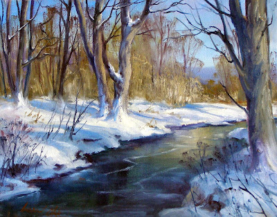 'Late Afternoon Along the Poultney River' oil on canvas, 8 x 10, unframed