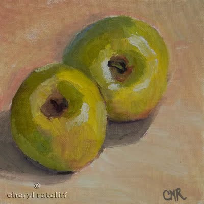Still Life Original Oil Painting of Yellow Apples by Cheryl Ratcliff